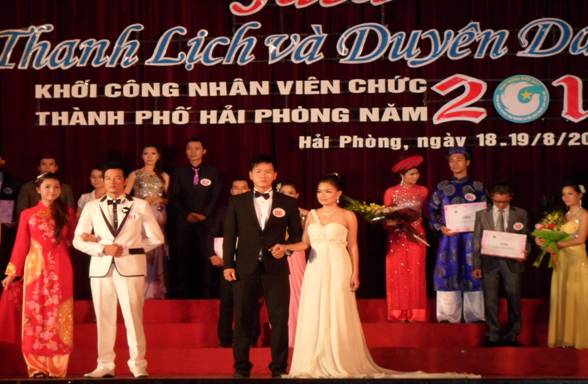Implementation of the work program mission and Teenager movement in 2011 of the serving Hai Phong union; With the purpose of creating useful playground to help city officials have the opportunity to interact, learn, contributethe promotion of cultural activities a healthy spirit, Standing Committee member Steering group has held "Gala elegant and charming" city Public sector employees in 2011 in 02 days 18 - 19/8/ 2011 at the Palace of Culture and Youth Sports City. Gala of the contest: Apparel departments, elective Apparel, Guess that team and Talents. At the same time, the contestants participated in charity at Flamboyant orphans Village.