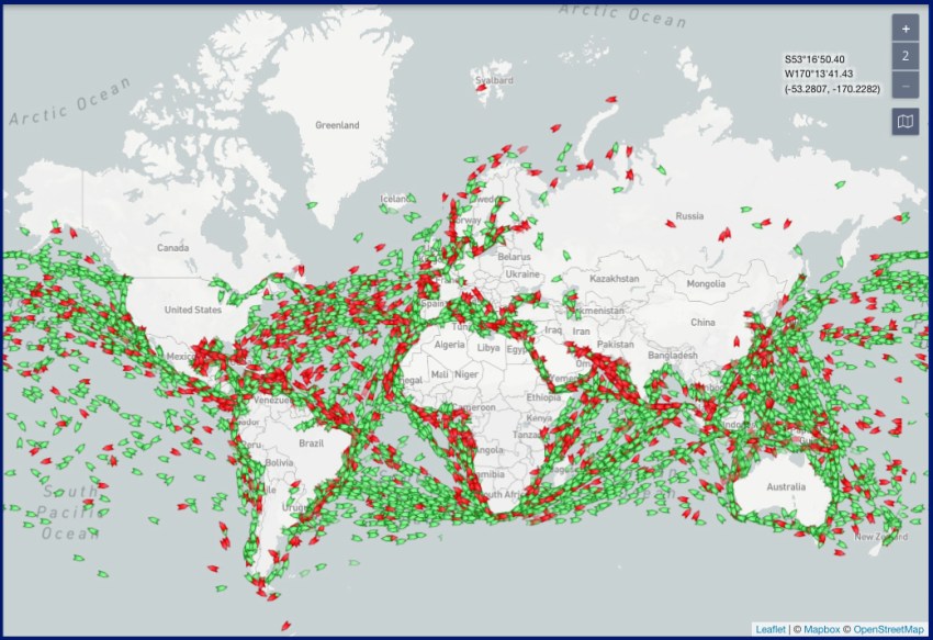 Ảnh hiển thị hoạt động của hơn 62000 tàu hàng và tàu dầu ở các khu vực trên