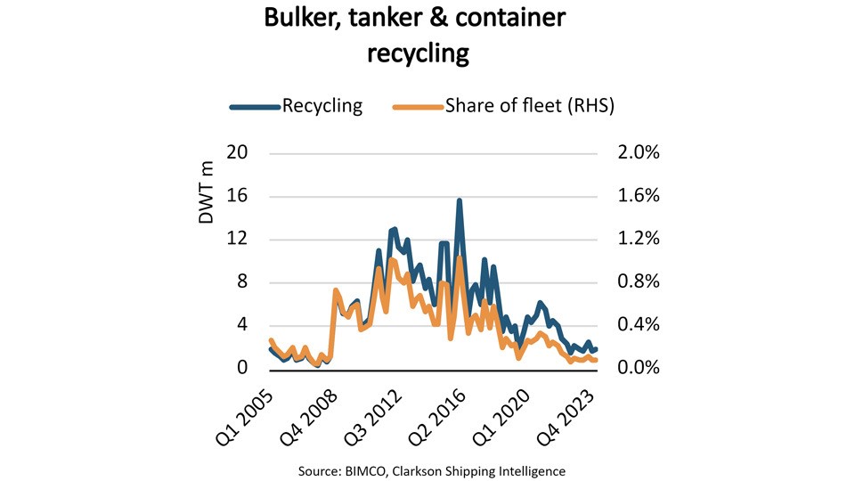 Hai năm vừa qua, số lượng tàu hàng rời, tàu dầu và tàu container được phá dỡ đã giảm xuống mức thấp nhất trong vòng 20 năm trở lại. Nhu cầu vận chuyển tăng lên sau hàng loạt cú sốc trên thị trường cùng với số lượng tàu đặt đóng mới thấp đã khiến cho các tàu già hơn được tiếp tục giữ lại khai thác lâu hơn thường lệ.