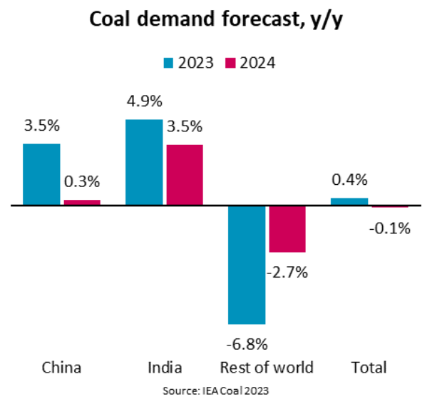 Với Ấn Độ, nhà nhập khẩu than lớn thứ 2 trên thế giới, vẫn chưa có một dự báo rõ ràng. Năm 2023, sản lượng than khai thác trong nước cao đã làm giảm lượng than nhập khẩu, dù cho nhu cầu tiêu thụ điện tăng. Nếu Ấn Độ tiếp tục thành công trong việc đẩy mạnh khai thác trong nước, nhu cầu vận chuyển than toàn cầu sẽ còn giảm thêm trong năm 2024.