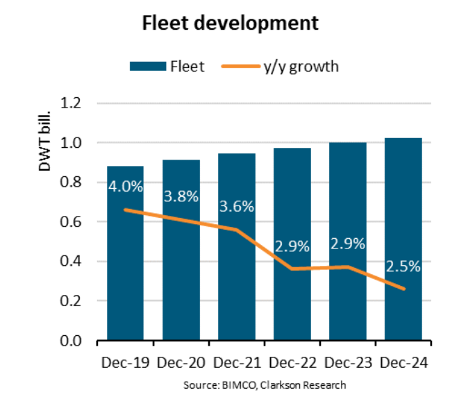 Dự báo tăng trưởng đội tàu hàng khô đạt mức 2,8% trong năm 2023 và 2,1% năm 2024. Tuy nhiên, cung tàu trên thị trường dự kiến chỉ tăng 1-2% trong 2 năm này do việc điều chỉnh giảm tốc độ tàu.
