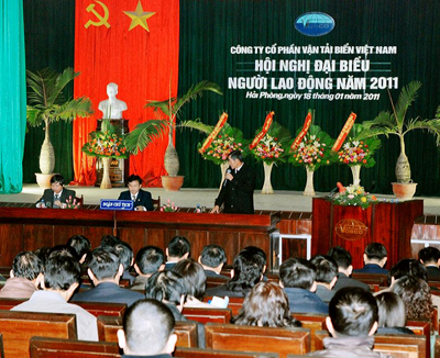 Implementation of Decree No. 87/2007/ND-CP of the Prime Minister promulgating the Regulation on the implementation of democracy in joint stock companies, limited liability company, on 18.01.2011, at the headquarters ofthe Lach Tray No. 215, Hai Phong, Vietnam ocean Shipping Joint stock company organized a Conference Delegate workers in 2011.