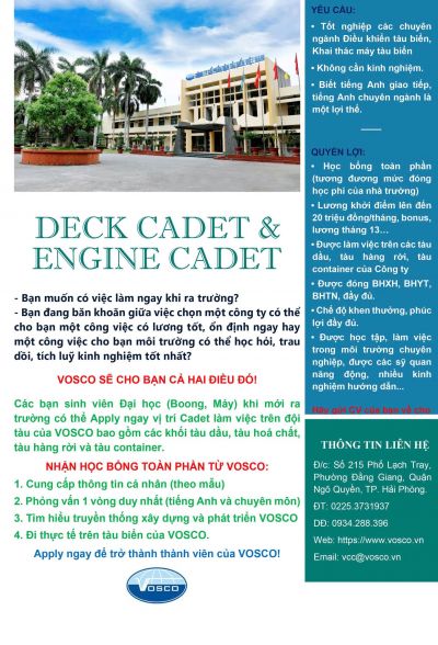 Công ty TNHH MTV Sửa chữa và Dịch vụ tàu biển Vosco thông báo tuyển dụng