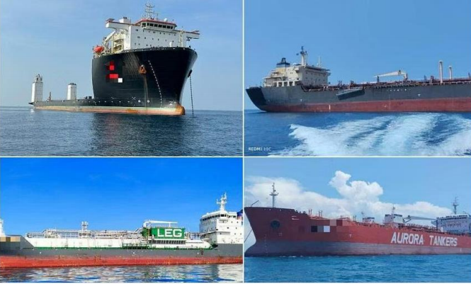 Cơ quan Thực thi Hàng hải Malaysia bắt giữ 4 tàu nước ngoài neo đậu trái phép ở vùng biển phía đông Johor từ ngày 13-18/5/2024 (nguồn: Straits Times)