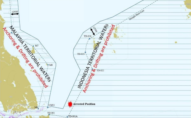 Tàu đi từ Fremantle, Australia đến Singapore và sau đó tàu bắt đầu dừng thả trôi ở vị trí có tọa độ 01°35’.3 N / 105°02’.1 E để điều chỉnh thời gian đón hoa tiêu Singapore tại Trạm hoa tiêu. Sau khi tàu dừng thả trôi khoảng 11 giờ, tàu bị trôi dạt và đã bị Hải quân Indonesia bắt giữ ở vị trí có tọa độ 01°-27'.7 N / 105°-01'.2 E. Cả hai vị trí đều nằm trong lãnh hải Indonesia.