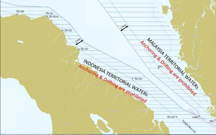a) Đánh dấu khu vực, vùng biển cấm tàu thả neo và thả trôi theo qui định của Malaysia, Indonesia trên các hải đồ liên quan để lưu ý không vi phạm.